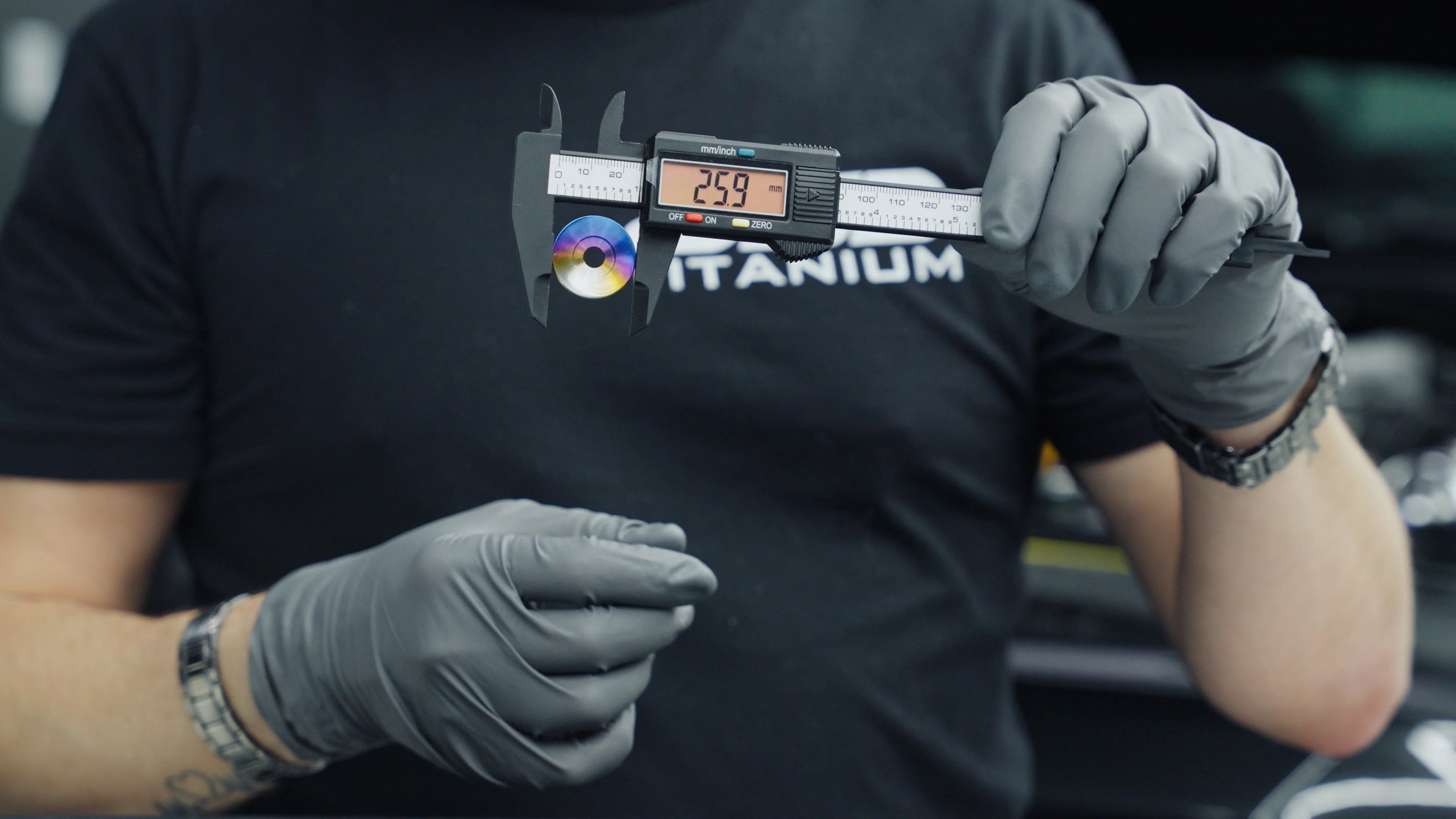 The final measurement you will need is the length of the bolt. Using the JDC Titanium Bolt Measuring Gauge place the bolt on top of the ruler section (located on the back) and determine the specific size of the bolt.