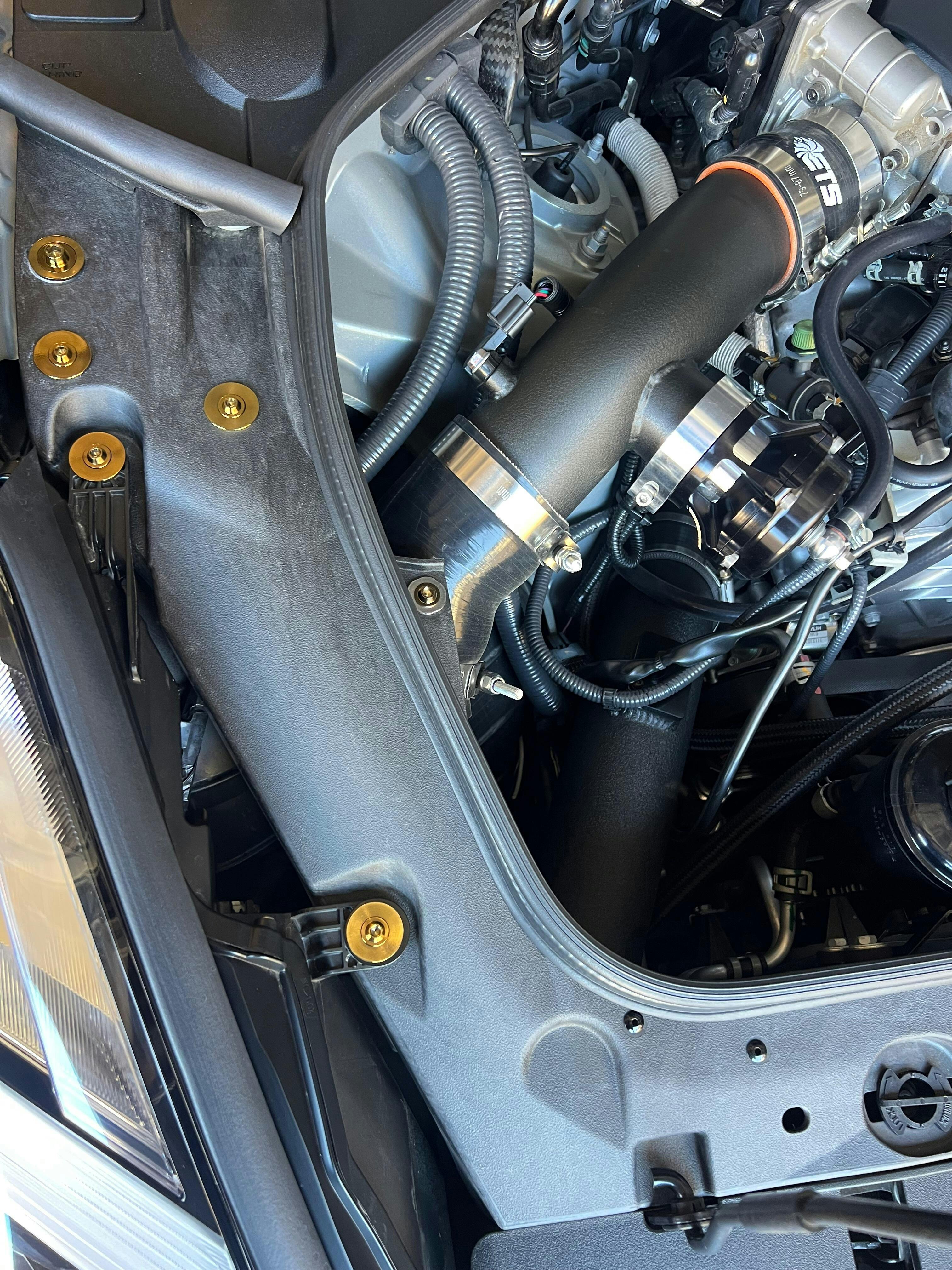The JDC fender hardware kit replaces the four ugly green M6 bolts and two gray M10 bolts right above the headlights with beautiful titanium hardware we designed specifically for the GT-R. Titanium is around 45% lighter, way stronger, and will not corrode like your stock steel bolts. All of our titanium hardware is made from a Ti6Al-4V (Grade 5) titanium. Each piece is hand polished before receiving our proprietary anodizing process to create the vibrant colors we're known for!